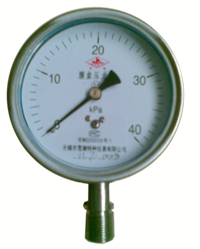 不銹鋼膜盒壓力表可測量有一定腐蝕性的氣體或液體的微小壓力。儀表的外殼及導壓系統(tǒng)采用1Cr18Ni9不銹鋼材料。